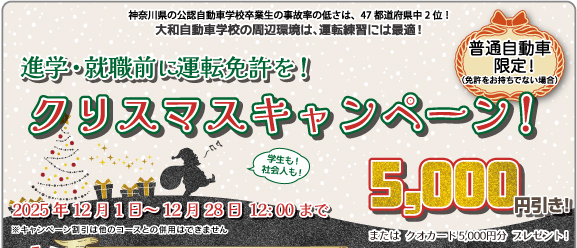 社会人や学生、お友達を誘っての入校など、お得で安心なキャンペーンです。 キャンペーン内容につきましては、どうぞお気軽に受付までお問合わせ下さい。 (2025/12/01)